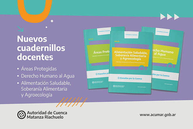 Las publicaciones forman parte de las iniciativas que se impulsan a través del programa Escuelas por la Cuenca, que incluye entre sus propuestas la formación docente como un modo de acompañar la implementación de la Ley 27.621 de Educación Ambiental Integral.