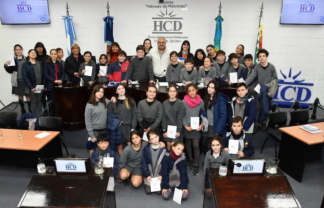 El presidente del Honorable Concejo Deliberante de Quilmes Fabio Baez, recibió hoy a dos escuelas del distrito que participaron del Programa “Estudiantes al HCD”.