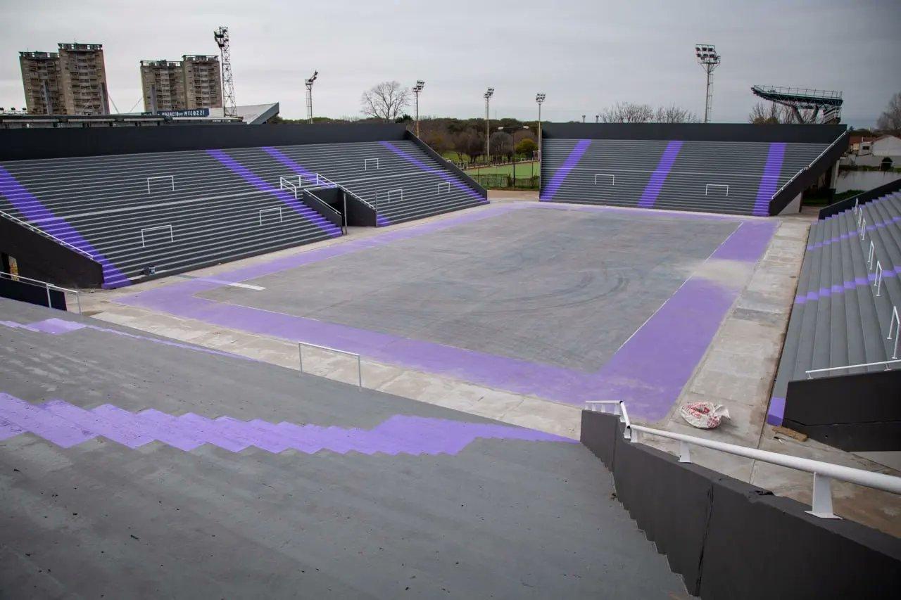 Desde la Secretaría de Desarrollo Urbano y Obra Pública, a cargo de Ceci Soler, informaron que en el Microestadio Néstor Kirchner, obra que cuenta con el financiamiento de Nación, se desarrollan diversas tareas que tienen que ver con la construcción de su edificio principal y plaza de acceso. En cuestión, se va a volcar hormigón en las plataformas por delante de los escalones en el acceso principal. En la planta baja se están reacondicionando carpinterías, ejecutando el contrapiso y el cerramiento de muros bajo las tribunas.