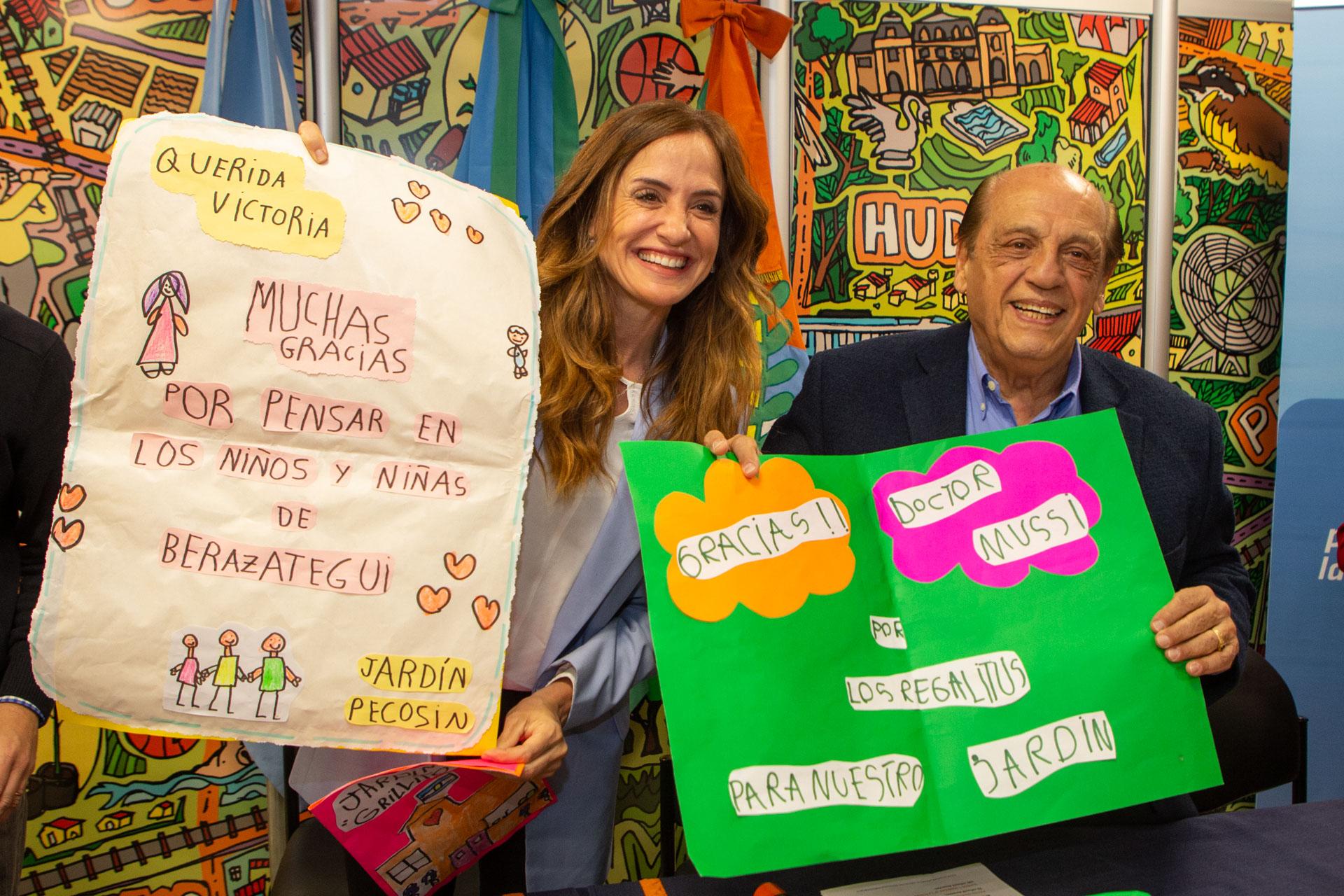 El intendente de Berazategui, Juan José Mussi; y la ministra de Desarrollo Social de la Nación, Victoria Tolosa Paz, participaron de un encuentro con directivos y docentes de 11 Jardines de Infantes municipales -que completan una matrícula de 1.158 niños y niñas-; así como con los pequeños y pequeñas y sus familias. En ese marco, dialogaron sobre la situación actual y los desafíos que se presentan en el futuro inmediato para la comunidad educativa local.