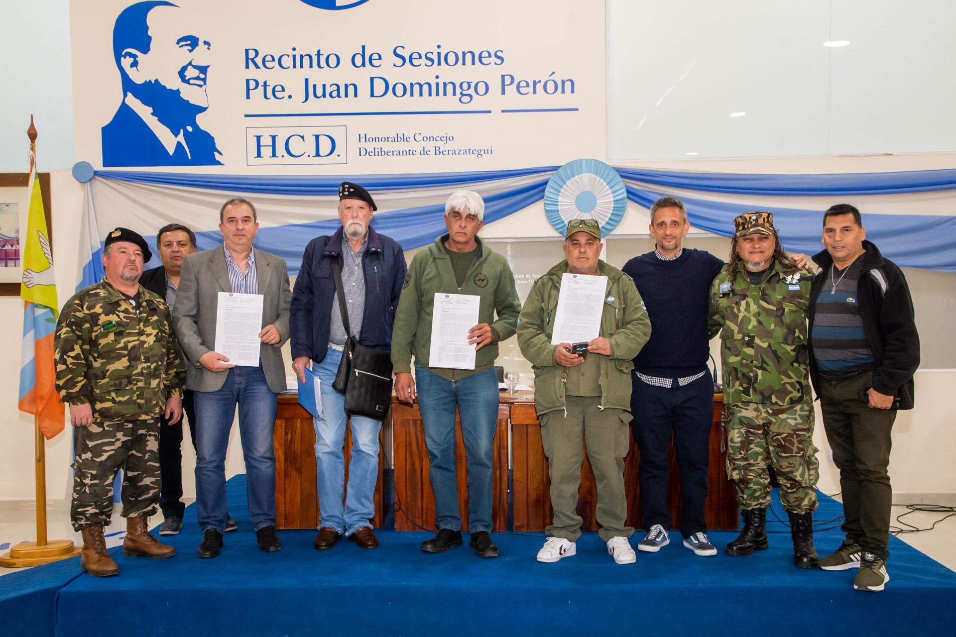 El Honorable Concejo Deliberante de Berazategui sancionó dos resoluciones de reconocimiento a los Soldados del Área Continental, Apoyo Táctico y Logístico de la Guerra de Malvinas.