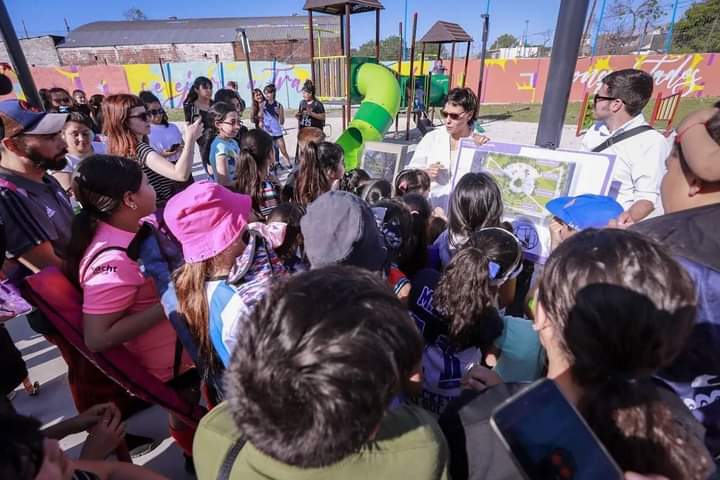 Estuvieron presentes la secretaria de Desarrollo Urbano y Obra Pública local, Ceci Soler; la subsecretaria de Hábitat, Emilia Aristei; la titular de la UDAI ANSES de Solano, Florencia Hernández, además de vecinos y vecinas que estaban disfrutando de la plaza.