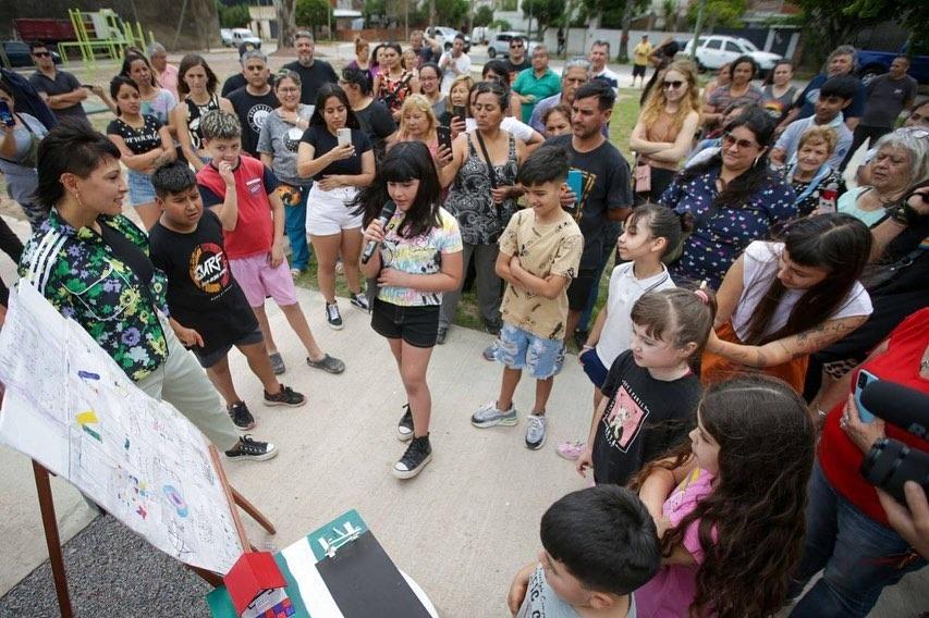 “Esta plaza Primavera es de ustedes, de los vecinos y vecinas. Lo que era un sueño ahora es una realidad y surgió como iniciativa de un proyecto de Mora, una vecina del barrio, que fue concretado a partir de la necesidad, de la organización del barrio y del pedido de ella. La plaza y el paseo es para que lo disfruten todos en familia y con amigos”, señaló Mayra.