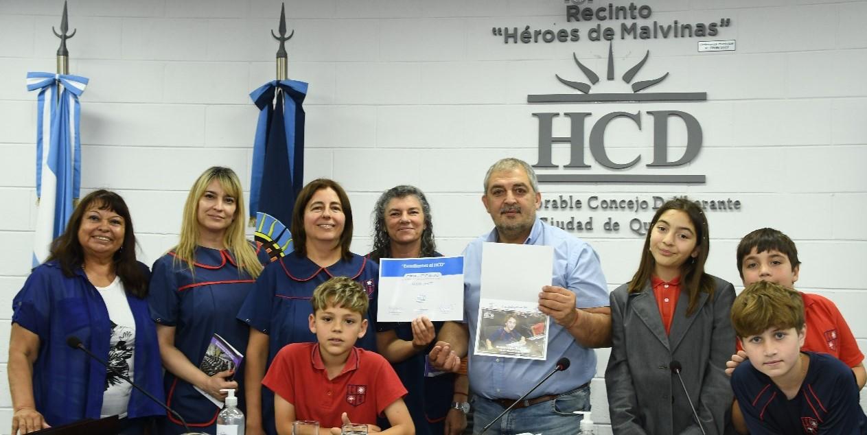 Los alumnos de 5° grado del Colegio Almafuerte de Bernal fueron recibidos por el presidente del Honorable Concejo Deliberante de Quilmes Fabio Baez y la secretaria Legislativa Edith Llanos.