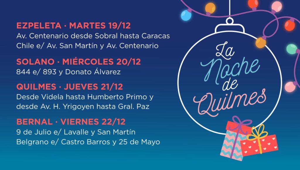 – Jueves 21/12: “La Noche de Quilmes”, en el perímetro de las calles Humberto Primo, Hipólito Yrigoyen, Videla y Paz.