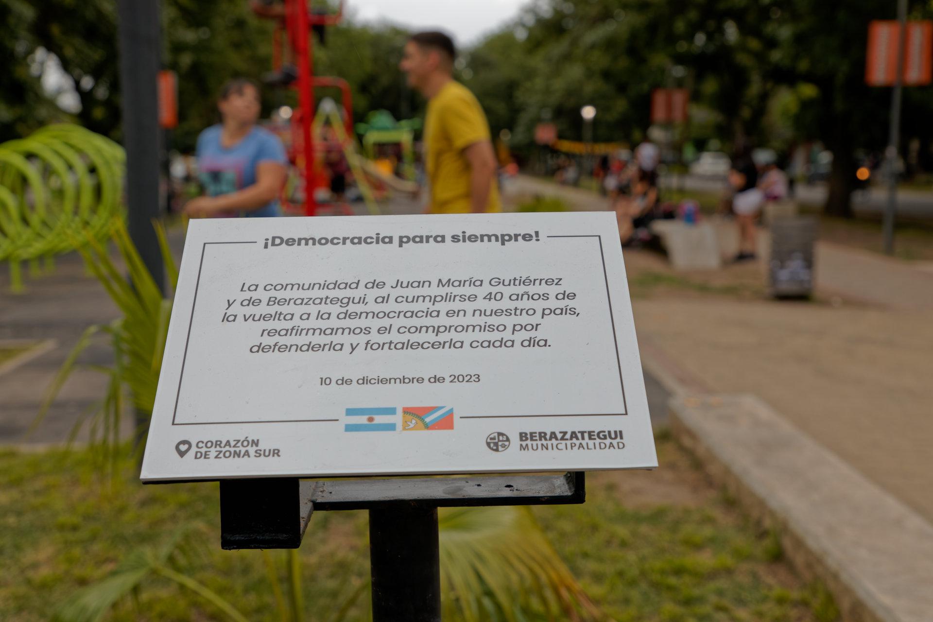 Se realizó una conmemoración por los 40 años de la Democracia en la plaza Carlos San Martín, de Gutiérrez. Allí, estuvo el intendente municipal, Juan José Mussi, acompañando las distintas actividades desplegadas.