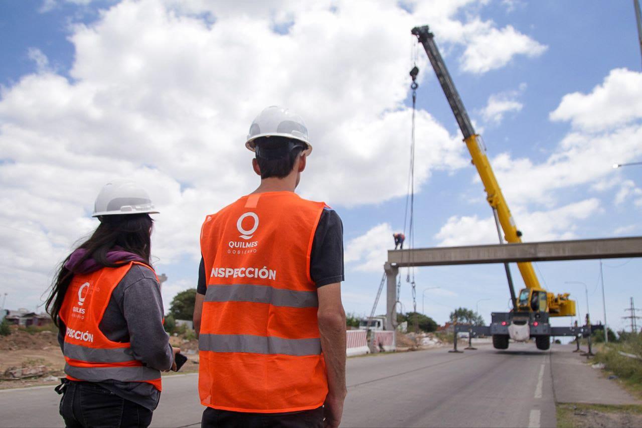 Durante los últimos días, los trabajadores, coordinados por la Secretaría de Desarrollo Urbano y Obra Pública, a cargo de Ceci Soler, comenzaron con las tareas de montaje del nuevo puente peatonal que cruzará la traza principal del Acceso Sudeste en las proximidades de la avenida San Martín. Con las bases ya finalizadas, se prosiguió con el armado de la estructura que fue prefabricada en un taller de hormigón a medida, según los requerimientos del lugar de emplazamiento.