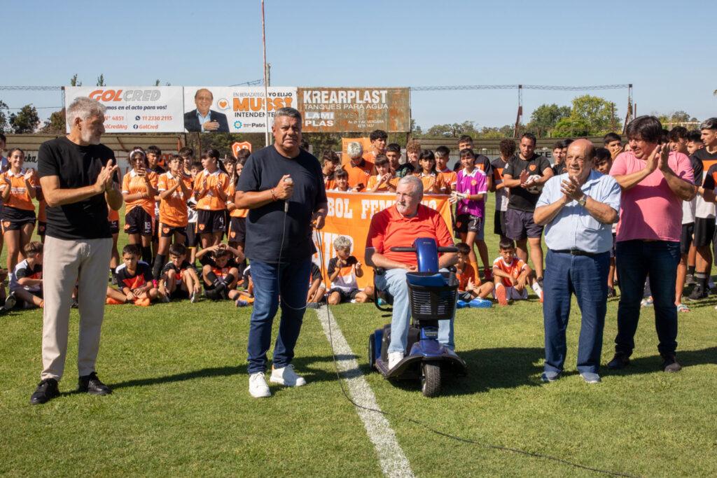 Rodeado de cientos de jugadores y jugadoras de las divisiones infantiles y juveniles del Club; y acompañado por los futbolistas homenajeados, Mussi aseguró: “Hoy cumplimos un sueño todos los que queremos a Berazategui, como Roberto (Rodríguez) y yo, que fui médico ad honorem durante un montón de años. Amamos a este Club, nos representa, lleva el nombre de nuestro Municipio. Soy hincha, y para un hincha de fútbol lo mejor que hay es poder darle algo al Club de sus amores”.