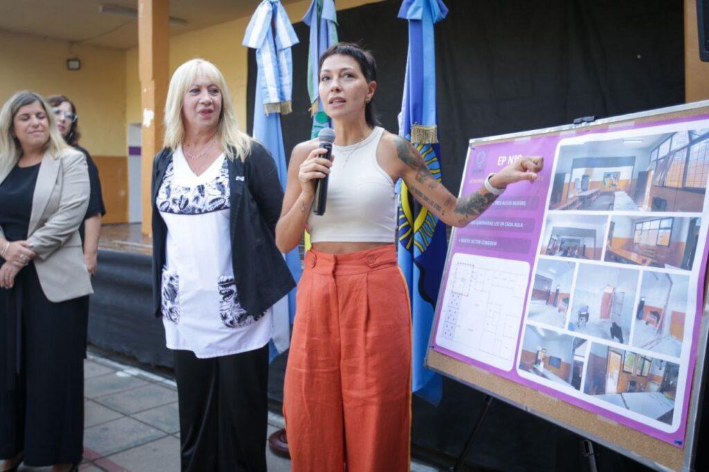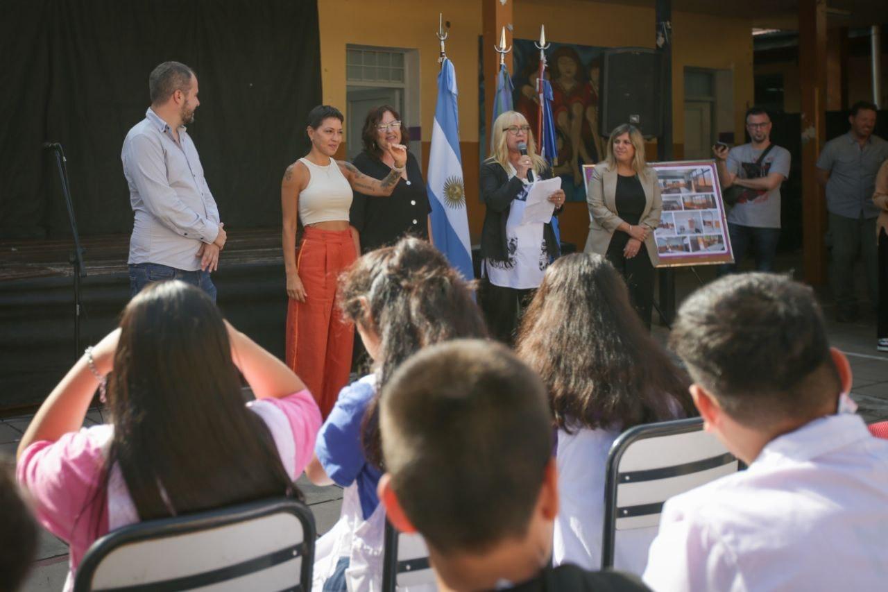 En su discurso ante la comunidad educativa, la Jefa comunal destacó el trabajo conjunto para llevar adelante las mejoras y afirmó: “Tenemos la convicción de que hay que tener oportunidades para desarrollarse en la vida, y eso es lo que queremos para ustedes. Nosotros trabajamos para que la escuela esté mejor, para que haya instrumentos y condiciones, y ustedes tienen que hacer su trabajo que es el de ser responsables, estudiar y ser buenos compañeros”.
