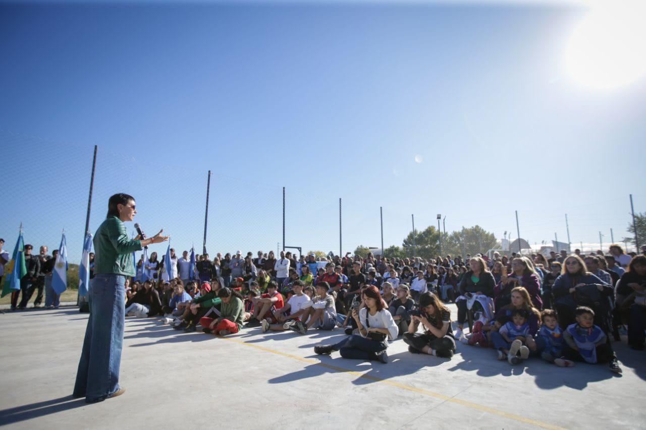 “Hay que tener conciencia de cómo llegamos a poder tener este polideportivo, en un momento donde hay muchísima adversidad para poder hacer esto. Cuando el presidente (Javier) Milei, en cadena nacional hace dos días, hablaba que hay que reducir el gasto público, eso significa la obra pública. Entonces cuando él decide que no haya más financiamiento, lo que está haciendo es quitarle la posibilidad a barrios como este de que tengan un polideportivo, un centro de desarrollo infantil, de que podamos seguir avanzando con todas las cuadras de asfalto y de obra hidráulica que hacen falta en Bernal Oeste”, subrayó la Jefa comunal.