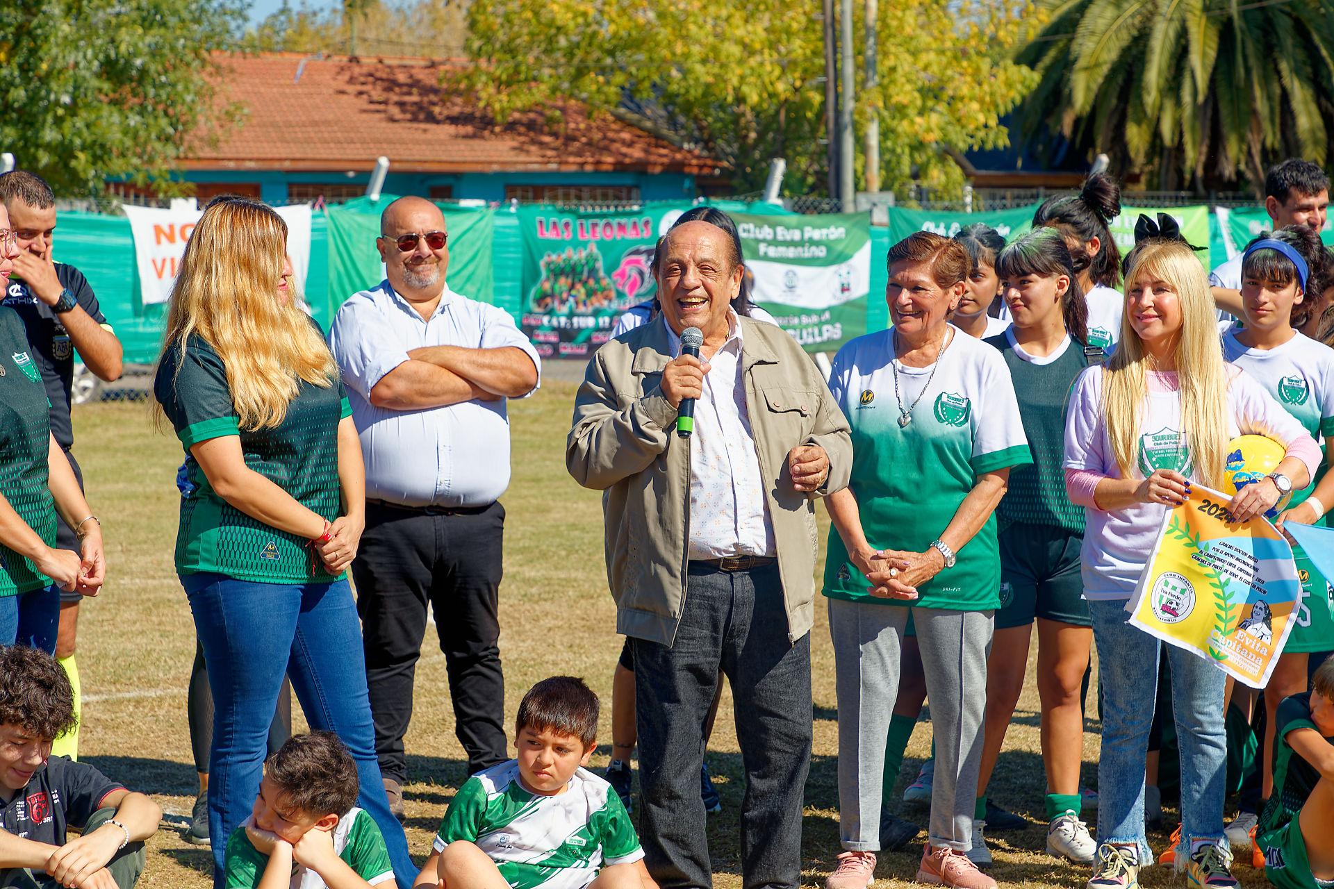 Acompañado por la secretaria de Desarrollo Social y Comunitario, Recreación, Turismo y Deportes, María Laura Lacava, el Intendente estuvo el sábado 20 abril en el anexo deportivo de la Sociedad de Fomento Sourigues, para iniciar el Evita Capitana. En tanto, el domingo 21 fue el turno del Evita en el Club Kennedy Norte.