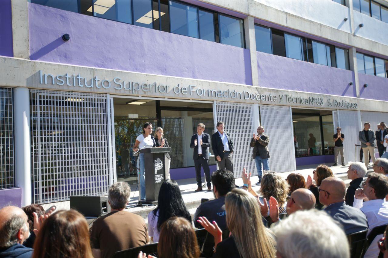 La intendenta de Quilmes, Mayra Mendoza y el gobernador de la Provincia de Buenos Aires, Axel Kicillfof, inauguraron este miércoles el nuevo edificio del Instituto Superior de Formación Docente y Técnica (ISFDT) Nº 83, ubicado en la calle 893 entre 843 y 844, en pleno centro de San Francisco Solano. Se trata de una iniciativa muy anhelada por la comunidad académica, docentes y estudiantes, ya que es la primera vez en décadas que la entidad cuenta con un espacio propio.