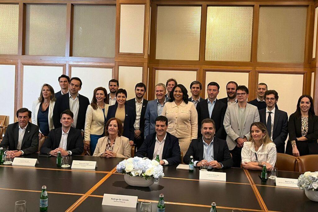 Además de la Jefa comunal de Quilmes, la delegación estuvo compuesta por los gobernadores Ignacio Torres (Chubut) y Carlos Sadir (Jujuy); el exgobernador Juan Schiaretti (Córdoba); el vicegobernador Lucas Spinelli (Misiones); los senadores Maximiliano Abad y Alejandra Vigo; los diputados Rodrigo De Loredo y Cristian Ritondo; la directora de ARSAT, Noelia Ruiz; el CEO de Bitso Argentina, Julián Colombo, y el legislador porteño Darío Nieto.