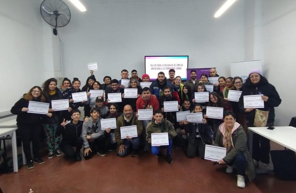 El Municipio de Quilmes informa que se desarrolló la última clase y la entrega de certificados del primer Taller de Apoyo a la búsqueda de empleo destinado a la comunidad sorda de Quilmes. El encuentro contó con la participación de 30 personas sordas, autoridades y trabajadoras municipales, quienes compartieron aprendizajes y reflexiones a partir de este primer taller. La propuesta estuvo a cargo de una licenciada en terapia ocupacional, una Intérprete de Lengua de Señas Argentina y una asesora lingüística en cultura sorda e implicó cuatro encuentros presenciales en Quilmes TEC La Bernalesa.