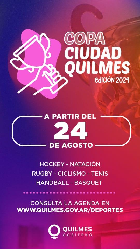 El Municipio de Quilmes informa que en el marco de los festejos por el 358º aniversario de la ciudad, desde el domingo 24 de agosto hasta el domingo 22 de septiembre, se desarrollará la «Copa Ciudad de Quilmes», con entrada libre y gratuita, en diferentes disciplinas deportivas como ciclismo, natación, tenis, hockey, básquet, handball, todas ellas con equipos masculinos y femenino, y rugby de varones.