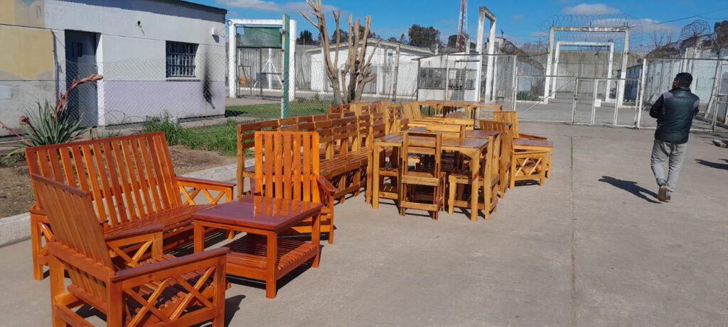 Personas privadas de la libertad de una cárcel bonaerense de Florencio Varela fabricaron sillas, mesas, juegos de sillones y percheros en una acción solidaria y de servicio a la comunidad para un comedor comunitario de José C. Paz.