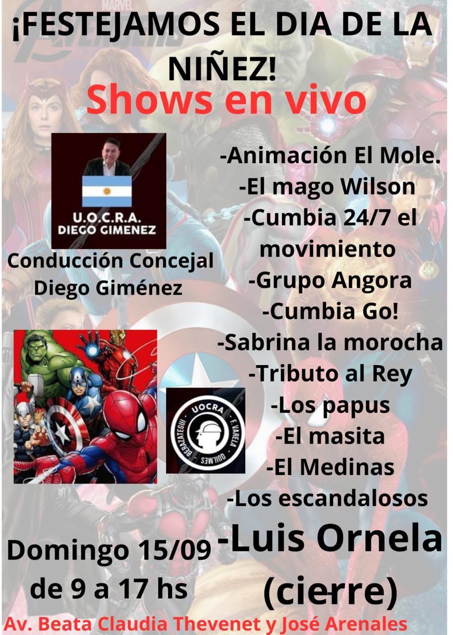 Se espera la concurrencia de muchas familias y se desarrollaran actividades gratuitas para los niños durante toda la jornada donde habrá sorteos, buffet gratuito para los niños, juegos inflables, espectáculos musicales con grupos de reconocida trayectoria, shows de animación para los chicos, entrega de golosinas y refrigerios, así como también entrega de juguetes y sorteos de motos, juguetes y celulares, . La fiesta comenzará a partir de las 9 hs y concluirá a las 17 hs del mismo día.