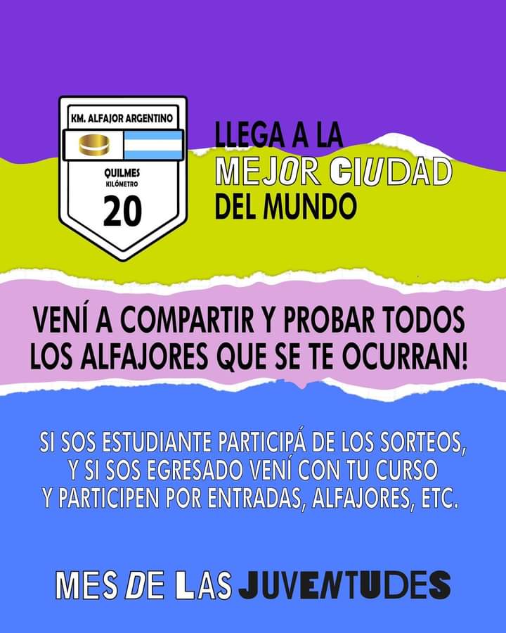 Esta iniciativa es articulada en conjunto a la Asociación Kilómetro del Alfajor Argentino y habrá más de 30 stands de alfajores, además de contar con la presencia de foodtrucks, cerveceros artesanales, feria de emprendedores locales, talleres gratuitos de pastelería, música en vivo y una competencia de baile. En el marco del Día del Estudiante, habrá juegos y sorteos para estudiantes y egresados de escuelas secundarias del distrito.
